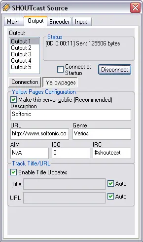 Pulsando el botón "Yellowpages" puedes añadir los datos que se publicarán sobre tu radio en Internet: nombre de la radio, URL, género, etc.