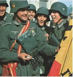 "los italianos eran gente, maravillosa nos invitaron a beber de su vino, y nuestros muchachos congeniaron enseguida, siempre estaban parloteando, sin embargo con los alemanes las relaciones eran algo tensas, a los germanos no les gustaba el caracter latino tan distinto al suyo ni el parloteo italiano constante, los italianos siempre se quejaban de trabajar mucho, uno me dijo que el "trabajo excesivo" estropeaba.
