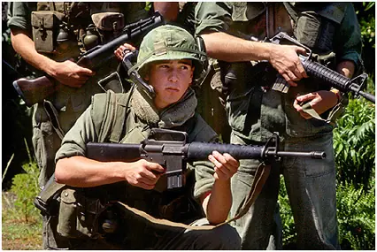 El M16 es el fusil estándar de los Estados Unidos, utilizado por primera vez en la Guerra de Vietnam sustituyendo al M14, rechazado en un principio por estar construido, en gran parte, de plástico y de aluminio.