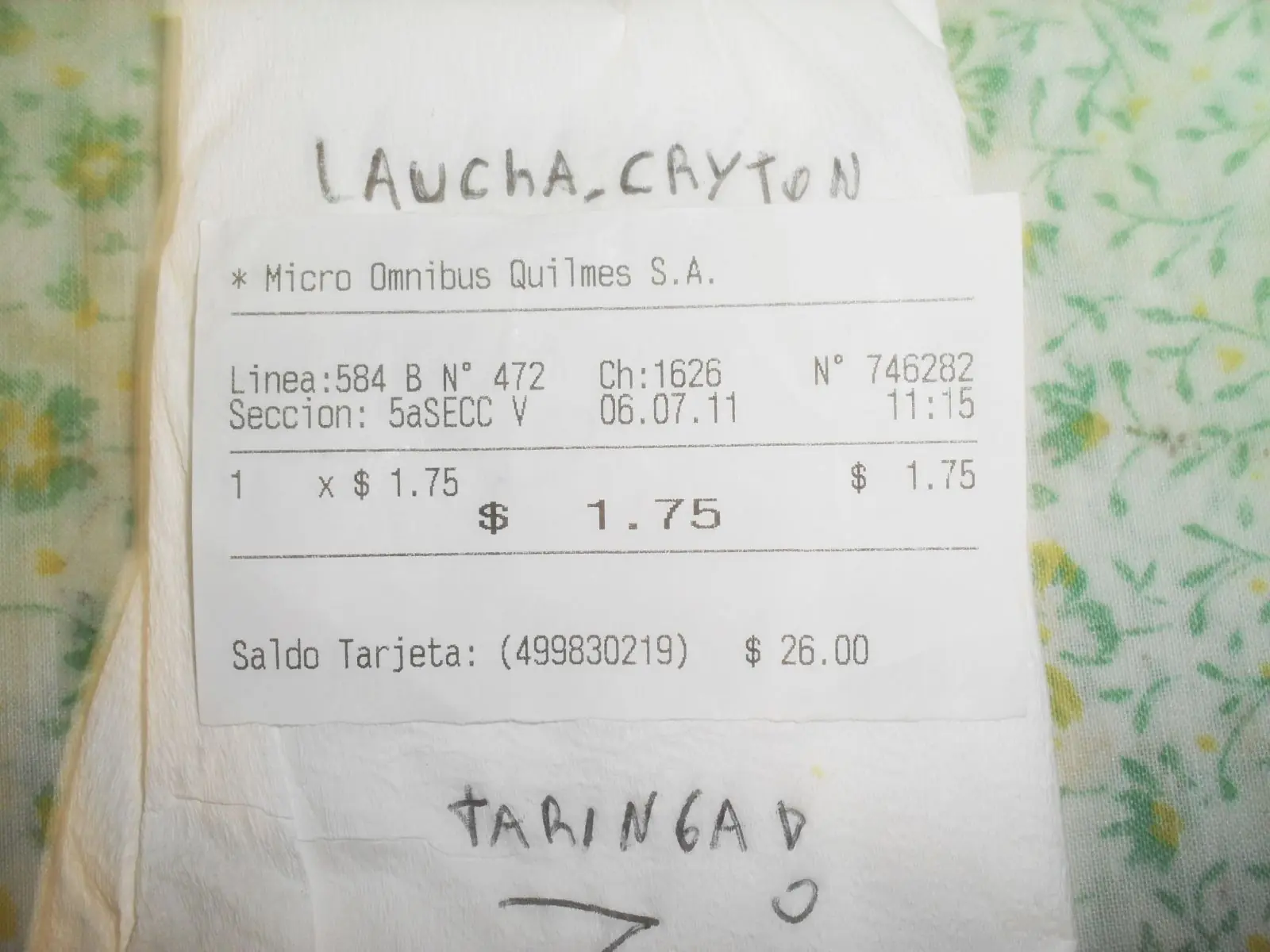 Mi tia enfermera del sanatorio modelo de quilmes,Como todas las mañanas/medio día, ella viaja Por que no posee auto, ella es una mujer grande (50 años aproximadamente) a este colectivo tambien se lo conoce como "el colectivo de la muerte" podes estar facil 1 hora esperandolo, Siempre con problemas, si no es por que no le anda la maquina de boletos, chocan, peor que apto criollo son.