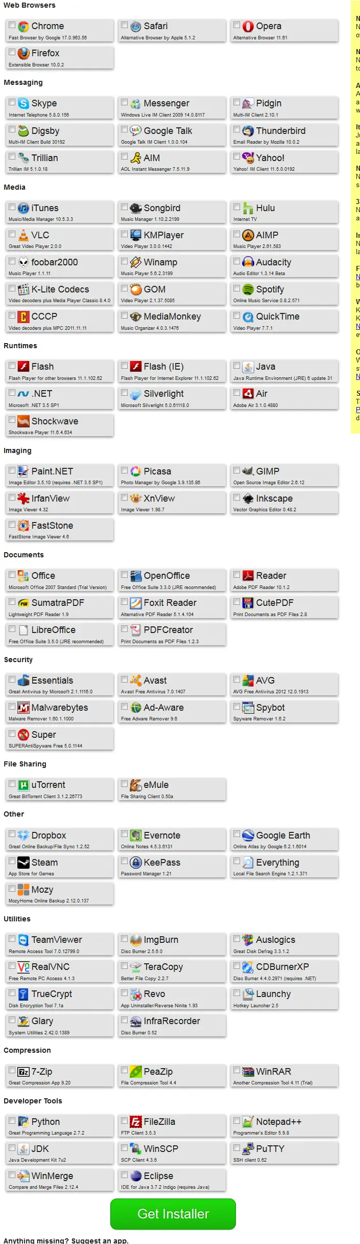 Hola gente hoy les traigo una pagina donde podes instalar 93 programas para Windows de una sola vez,tambien hay algunos programas para Linux .Es una pagina muy conocida pero se que hay gente que quizas no la conosca.En fin espero que les sirvan