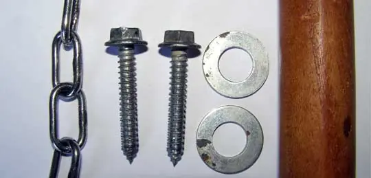 Arandelas: 2 el diametro interior lo más ajustado posible al tornillo y el diametro exterior no puede superar al de las seciones de madera.
