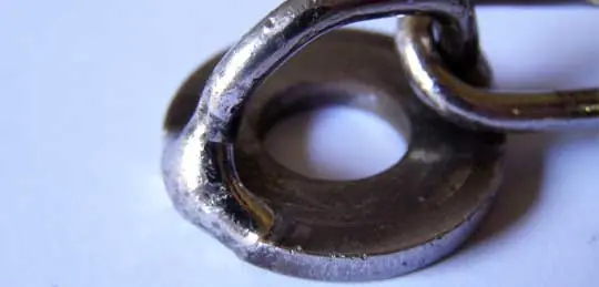 Ahora toca soldar la arandela con la cadena, de la forma que vemos en la imagen.