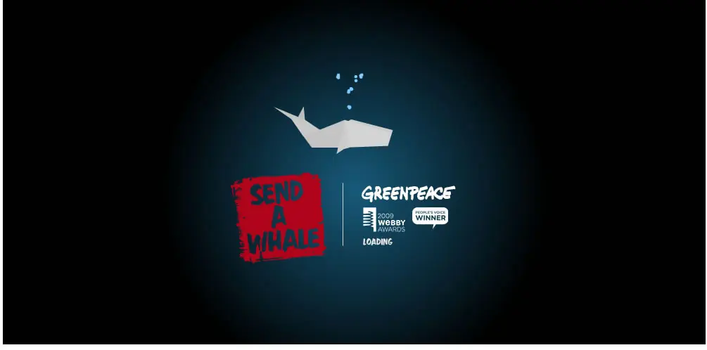 Greenpeace creó un portal para ayudar a salvar las ballenas evitando la caza de estas en el Japón, puedes entrar y armar tu ballena Origami, anexarle un mensaje y firmar la petición. Estas serán enviadas al nuevo primer ministro Japones para pedirle que detenga la caza de ballenas ya van mas de 250,000 tarjetas enviadas por personas de todo el mundo y la idea fue realizada tomando en cuenta el Origami