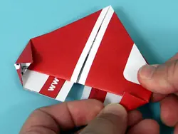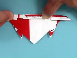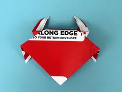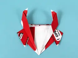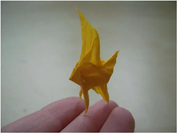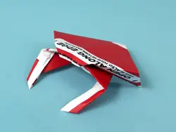 Paso 6: Agarre el extremo de uno de los triángulos. Tire de ella (entre las dos capas de triángulo) hacia atrás, hacia el ápice del triángulo. Doble y repita con el otro punto. Estas son las patas del cangrejo espalda.