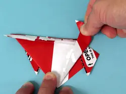 Paso 11: Dobla las esquinas posteriores de las alas hacia arriba y hacia adentro un poco. Las esquinas deben estar de pie con la espalda recta.