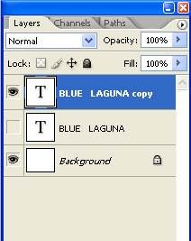 Una vez que tenga algunas selecciones de fuentes posibles, cada uno en su propia capa, puede seguir analizarlas y ver qué funciona. Con logos que tienen más de una palabra, la mayoría de las veces es buena para separar la aparición de las palabras de la otra. Dado que este proyecto en particular tiene dos palabras, "azul" y "Laguna", vamos a querer separarlos mediante la posible elección de dos fuentes diferentes. También puede separar las palabras entre sí, manteniendo la misma fuente, pero cambiando el color. Así que voy a experimentar con las 6 selecciones de fuente buena de arriba.