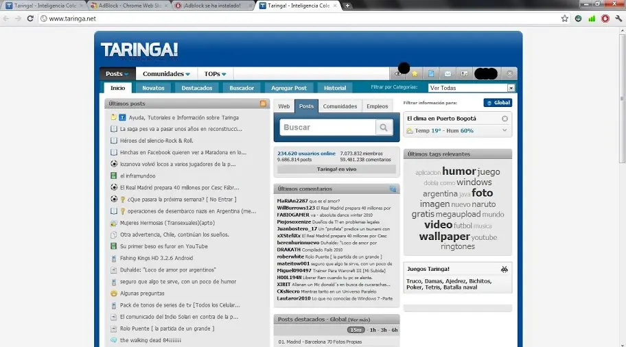 Luego puedes acceder a las páginas sin ninguna publicidad que te moleste, podemos poner el ejemplo de Taringa:
