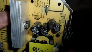 Esta es la placa de la fuente de alimentacion, la sacamos y vamos a una casa de electronica y les mostramos los capacitores que queremos reemplazar. Y cuales son? Son aquellos que que se vean hinchados o quemados, generamente son los que estan cerca de la fuente de alimentacion, si no te das cuenta preguntale al loco que te atiende. Es muy posible que no existan los capacitores que necesitas asi que te van a ofrecer capacitores parecidos, no hay problema con eso, por lo menos yo no tube ningun problema.