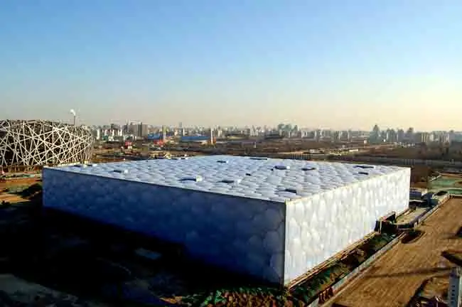 El Centro Acuático Nacional, también conocido con el nombre de 'Cubo de Agua', necesitó cuatro años de construcción y costó unos 200 millones de dólares (136 millones de euros), principalmente pagados por los chinos que viven en el extranjero.