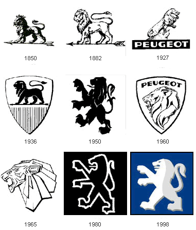 Un ejemplo de ello es el cambio de diseño de la imagen de Mercedes-Benz, donde prácticamente se sumaron los logos de Daimler-Motored-Gesellschaft y Benz & Cie para formar el antiguo logo azul y posteriormente el actual. Otros ejemplos de evolución podrían ser el de Alfa Romeo (Anonima Lombarda Fabbrica Automobili), que desde su segunda imagen de marca en 1910 no ha modificado la forma básica aunque sí ha retirado el nombre de Milano. El premio a la constancia se lo podría llevar Peugeot con su león o BMW son su círculo de colores característico. Volkswagen y Mitsubishi serían ejemplos de poca “variedad”.