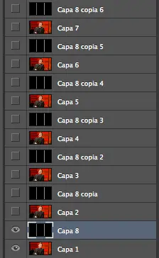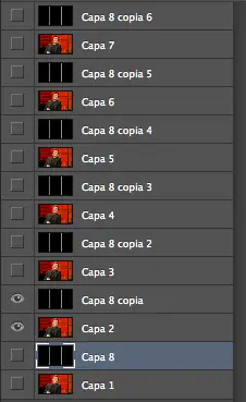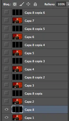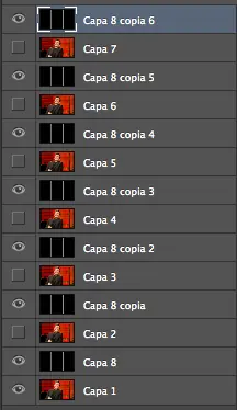 3. Hay que intercalar la plantilla en el gif , si son 9 capas del gif tiene que ser 9 capas de la plantilla , duplicar la capa cuantas veces sean necesarias