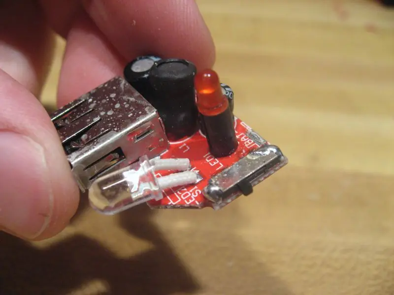 Por lo tanto el circuito de carga que uso tiene un par de LEDs en el mismo. Estos ningún efecto en el modo de carga USB y, de hecho, son molestos. Las quito, porque son inútiles y una pérdida de poder. Es por esto que les estoy cortando en las fotos de abajo. Usted no debe comenzar a cortar las cosas lejos a menos que sepas lo que estás haciendo. En serio Ben, sé que estás leyendo esto. Deje de cortar ahora. Así es como se pierde un dedo. De todas formas, si usted ha comprado un cargador barato que usar lo que tienes que sacarlo de su plástica, y desconecte todos los cables al azar o baterías. Lo que debe tener en cuenta es que el poder se conecta a su tablero. El mío tiene un pequeño y agradable + y - iniciar sesión para guiarme. Es necesario resolver esto por su cuenta en función de su situación. Por último, y lo más importante, usted debe mirar hacia fuera para los interruptores. Por ejemplo, la mía tiene un pequeño interruptor en el lado de ir de "Light" a "Off" a "USB". Yo sólo sigo el mío en "USB", ya que no se pierde ninguna energía a menos que algo está enchufado