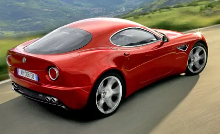 Lo más notable de esta carrocería, por la información que ha dado Alfa Romeo hasta ahora, es que tiene un coeficiente de elevación aerodinámico (Cz) negativo. Alfa Romeo no precisa si ese coeficiente es negativo en los dos ejes pero, en cualquier caso, es difícil que un coche sin alerones prominentes lo tenga. El 8C tiene un discreto alerón integrado bajo el paragolpes delantero.