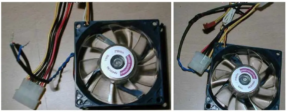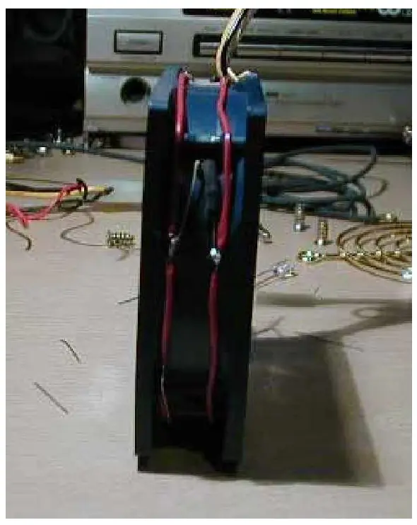 Bien pues después de soldar CABLE+ y CABLE- los unimos al + y el - de un conector MOLEX de 4 pines, recordad siempre que en un conector de alimentación MOLEX el hilo ROJO = +5v AMARILLO = +12v NEGROS = GND (-), ahora echamos una pequeña gota de superglue en cada agujero para que los leds se peguen bien ¡¡OJO!! comprobando que no rozan las aspas con el led, y ya esta todo echo, ¿facil verdad? espero que esta guía los ayude a moddear un poco su equipo.