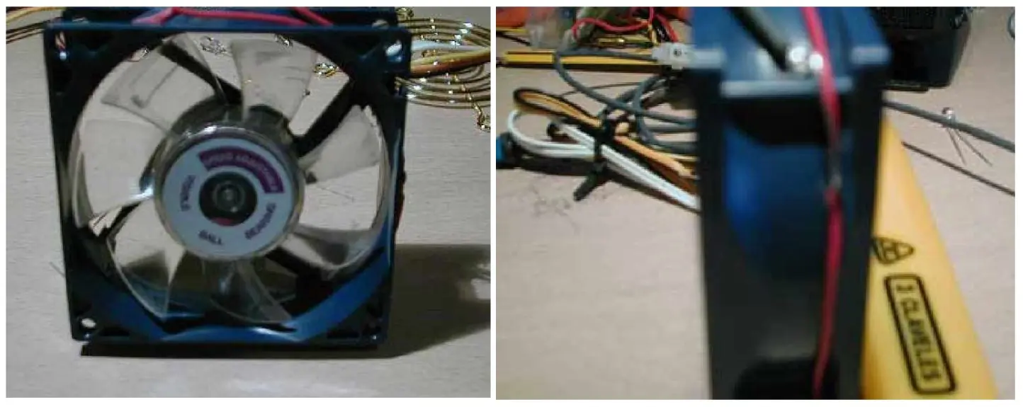 Una vez unidos los leds a los cables soldaremos un cable a cada extremo de los dos cables circulares que rodean el ventilador llamémoslos CABLE+ y CABLE- estos dos serán los que estén ya conectados al MOLEX de alimentación, esto puede parecer un poco lioso pero es muy sencillo simplemente leer el texto con atención y mirar las fotografías.