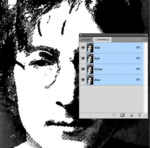 El siguiente paso, crear una nueva capa por encima de todos los demás. Ahora cambiar al panel de canales y (Ctrl + clic) en la miniatura del canal RGB para crear una selección.