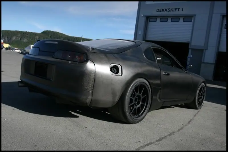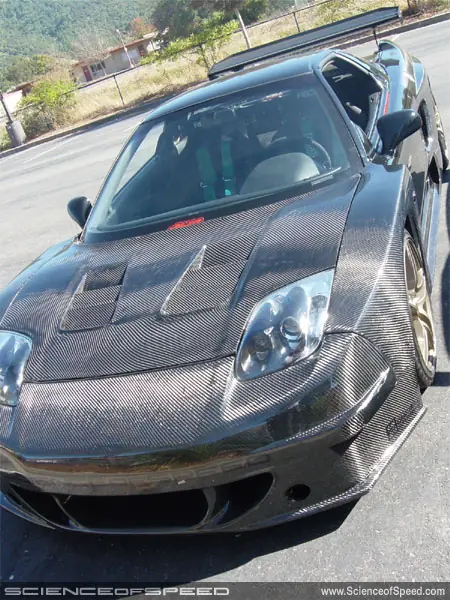 La fibra del carbón está allí por una razón alivianar . El kit de ensanche incluye el capo de CF, el guardabarro delantero y posterior de CF, faldones de ambos lados de CF, defensas delanteras de CF, defensas posteriores más anchas CF. También hicieron puertas de fibra de carbón y el alerón posterior.