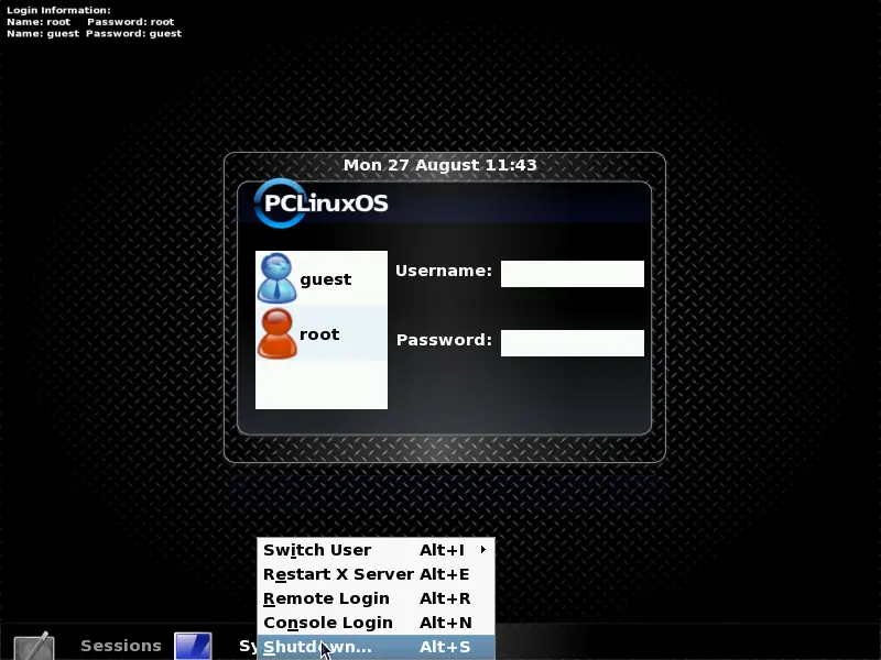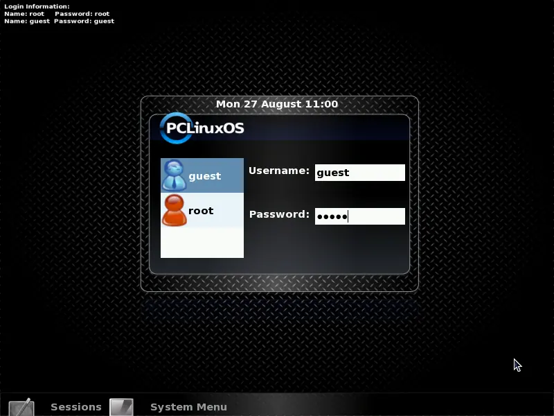 13.- El GDM pregunta quién entrará. Lo hacemos como invitado (guest) y con la contraseña guest. La contraseña para el administrador, superusuario o root es así: root