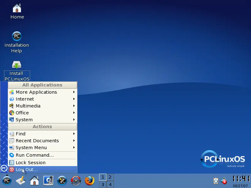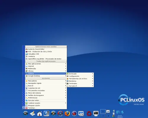 Le damos enter y entramos. En unos minutos ya estamos en Linux. Aquí te he señalado algunas de las caracterśticas de tu nuevo sistema operativo. El ambiente de PCLinuxOS es muy parecido a windows. Yo prefiero la pureza de Linux, con Ubuntu, UbuntuStudio y Debian, pero he preparado esta guía con el propósito de mostrarte al Linux sencillo y simple que han conseguido con PCLinuxOS, Otro boquete más al monopolio. Saludos debianeros.