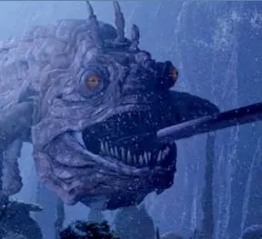 El monstruo Sando Aqua es una de las criaturas más terribles de las profundidades de Naboo. Este leviatán del mar posee el cuerpo de una serpiente, poderosas mandíbulas y un inmenso apetito. Constantemente esta comiendo escuelas enteras de peces para mantener su enorme bulto, pero siempre esta en búsqueda presas que resulten ser más suculentas.