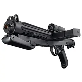 El arma de mano estándar para los Stormtroopers Imperiales es el Rifle Blaster Blastech E-11. Esta arma, que es fabricada exclusivamente para las Fuerzas Imperiales, cuenta con una culata capaz de plegarse en tres configuraciones diferentes.