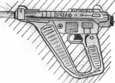 Esta pistola blaster, construida y comercializada por Merr Sonn, es una de las armas favoritas de muchos piratas y mercenarios que viajan a través del Anillo exterior por su pequeño tamaño que facilita esconderla y al gran impacto que a primera vista desmiente su tamaño.