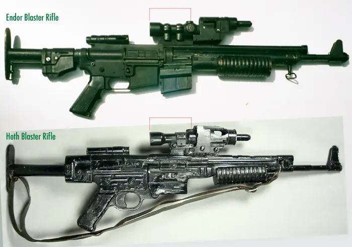 Como poseen un poder mucho mayor al de las pistolas, los rifles blaster son más pesados. Su uso generalmente esta restingrido a la milicia.