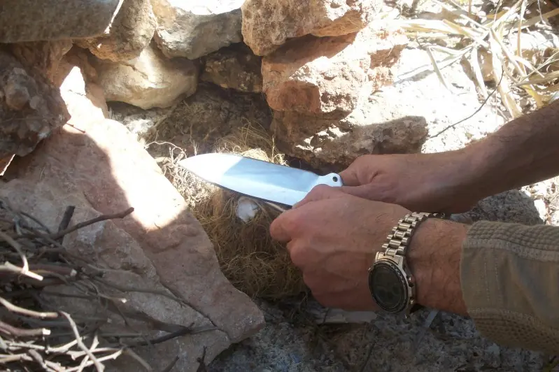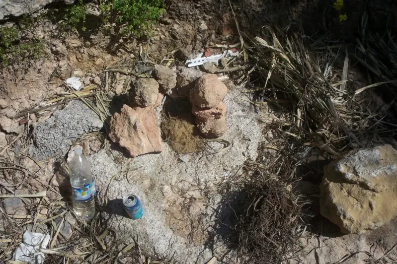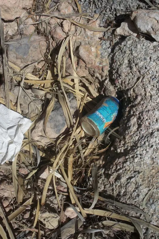 Introducimos el pico de la botella en el agujero de la lata y lo posicionamos en las rocas, esto es provisional ya que la botella mengua y lo tendremos que reajustar.