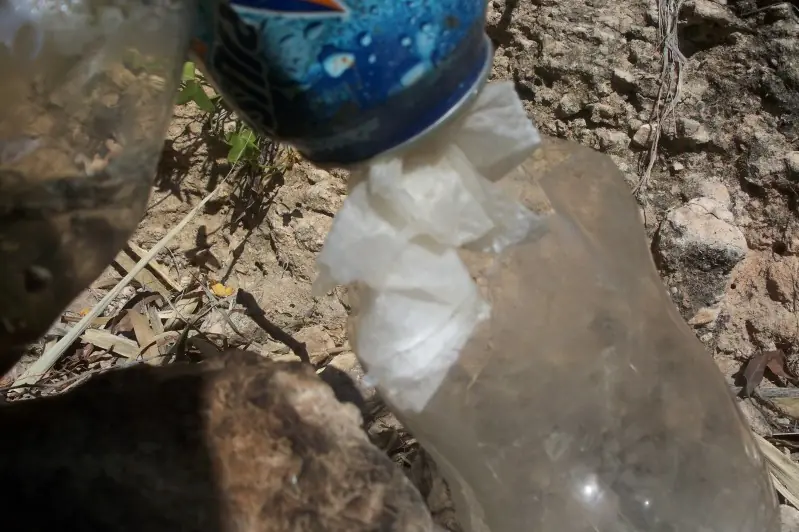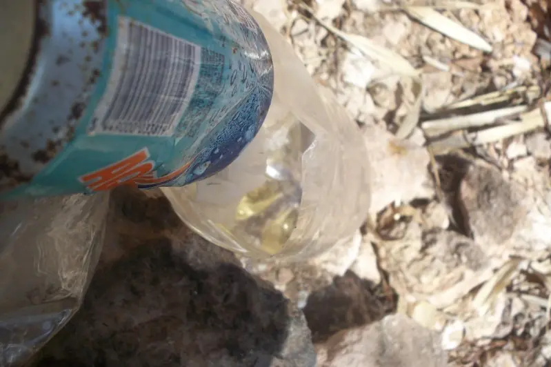 Otra botella vieja para hacer de recipiente, no se limpió a fondo ya que era solo para demostración
