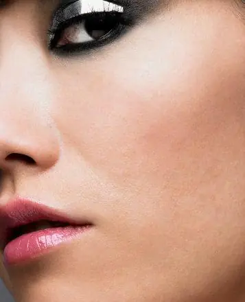 Con ambas manos, trazamos círculos pequeños que barren ambos pómulos, de fuera hacia dentro y bajando poco a poco, llegamos hasta las