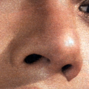 Repasamos toda la nariz, desde la base hasta la raíz, en toda su extensión, y en la base, a ambos lados de las aletas nasales, hacemos