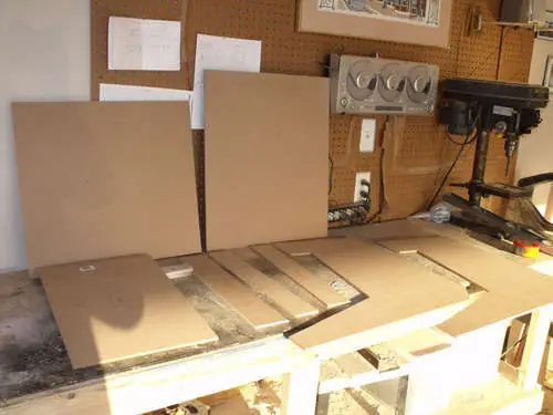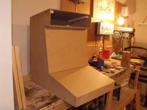 Sacar la forma de arcade en 1 / 4 "MDF. Córtelo con una sierra circular, sierra caladora, etc .. Mida y corte las partes restantes