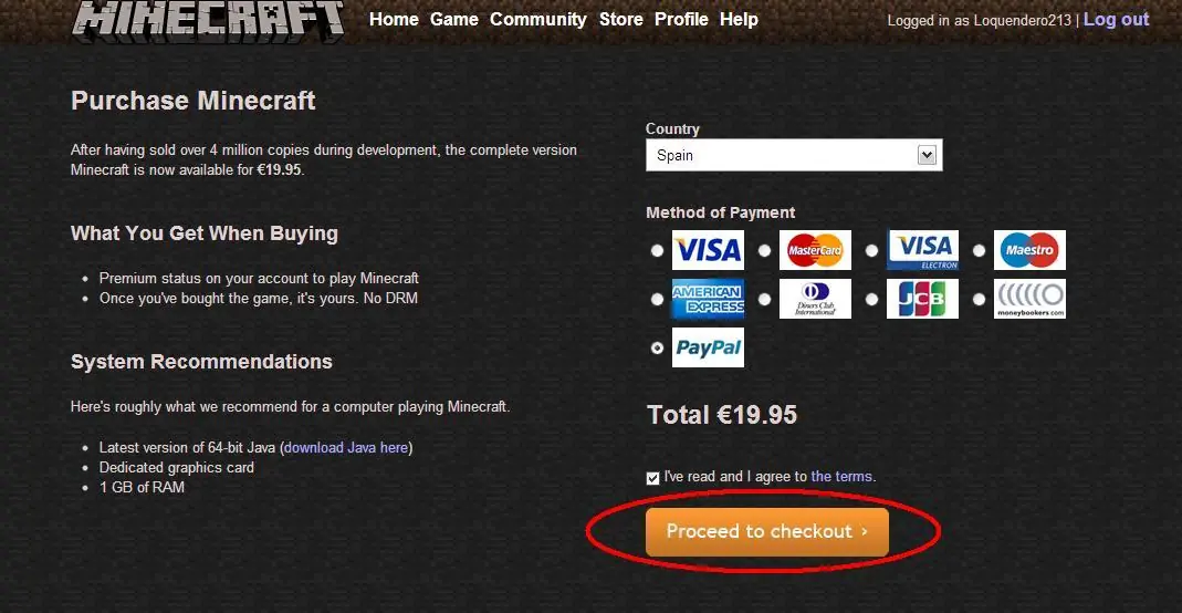 Tener cuenta en www.minecraft.net