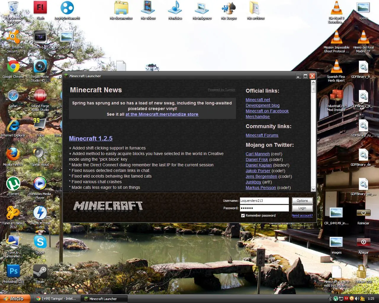 Hay se ve el launcher del minecraft (hay que poner contraseña para entrar)