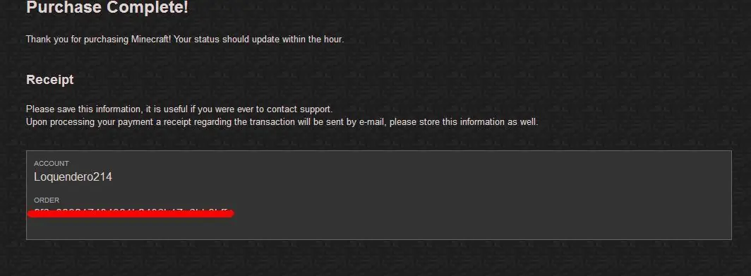 En esta nueva ventana, les dirán; que se han comprado el Minecraft