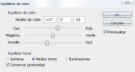 Pinchamos el equilibrio de medios tonos y deslizamos +17 al rojo y -19 al amarillo.