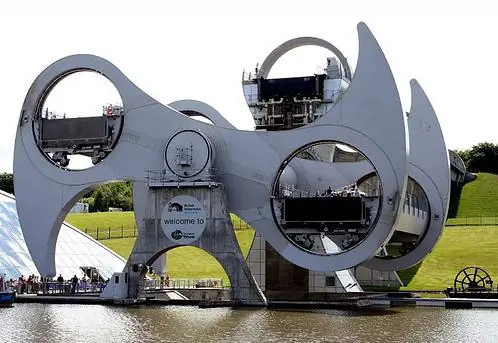 La Falkirk Wheel (en Escocia) resulta, si cabe, aún más asombrosa. Se trata de un "ascensor" para barcos que une dos canales separados por una altura de 24 metros. Los barcos entran en un compartimento inundado y son elevados por dos gigantescos brazos giratorios. Cuatro minutos después y tras completar un giro de 180º, el barco puede navegar por el nuevo canal.