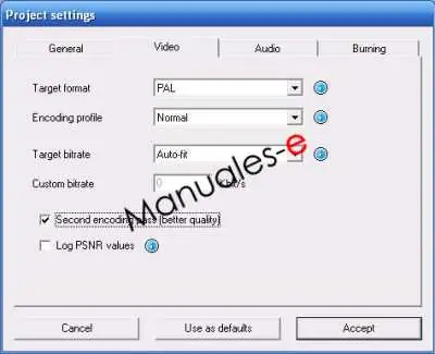 En la pestaña de Vídeo seleccionamos el formato que se ajuste a nuestra región, PAL o NTSC, si queremos mejorar un poco más el resultado final marcamos la opción Second enconding pass; hará dos pasadas al codificar el vídeo y evidentemente tardará más que si solo hace una.