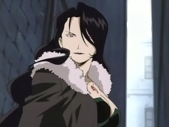 Es la que ordena a unos mercenarios que ataquen el campamento de los refugiados de Ishbal donde estaba Scar, y se la ve usar su poder por primera vez para liquidar al jefe de estos soldados. Durante algún tiempo se da a entender que ella es una infiltrada y que el Fuhrer no sabe nada.