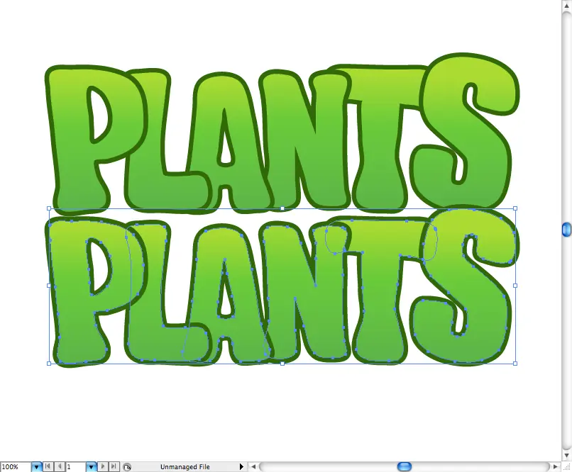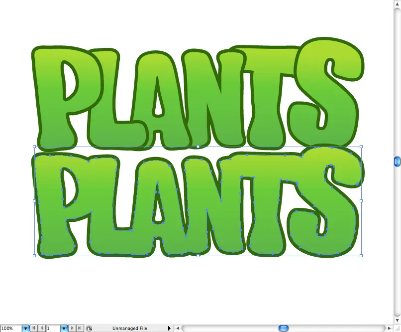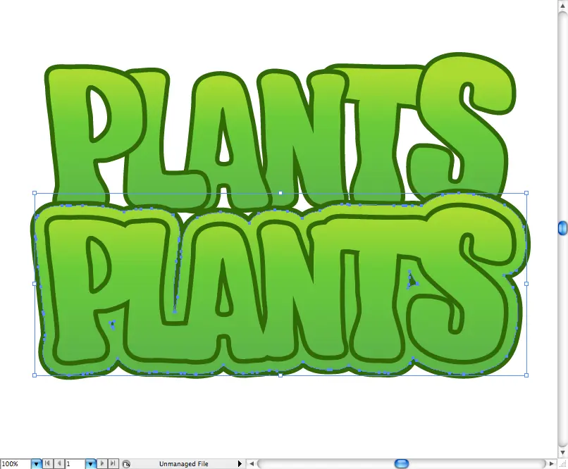 Vamos ha empezado con el tipo de plantas, en primer lugar crear algunos esquemas (Comando + Mayúsculas + O / ctral + Shift + O), luego desagrupar y cambiar el tamaño y posicionate ellos en una forma menos organizada. También agregar un poco de verde a gradiente lineal amarilla.