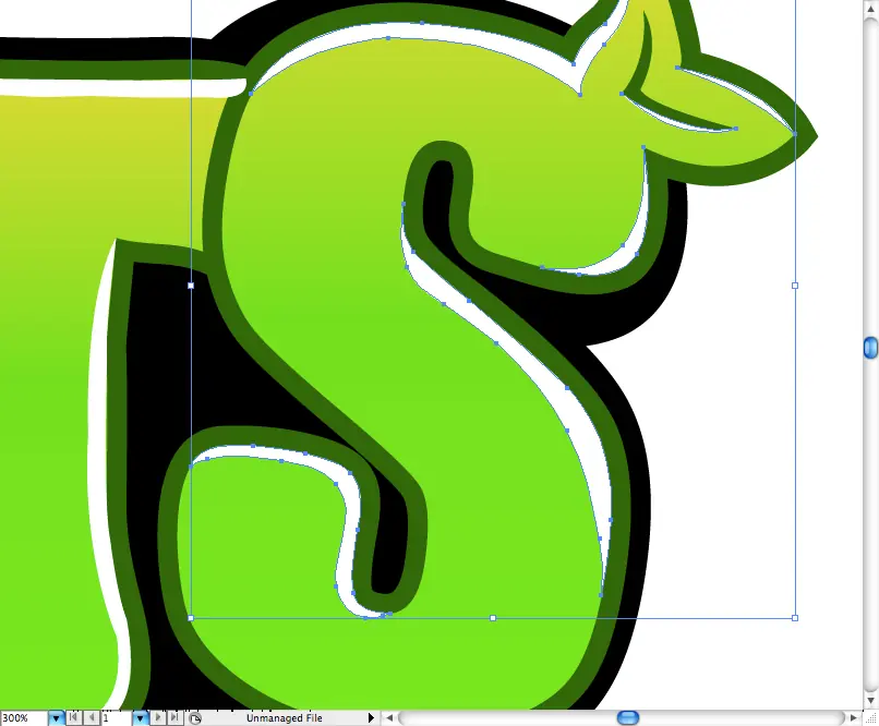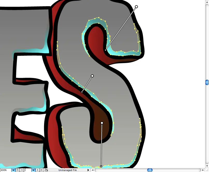Por lo tanto, utilizando la herramienta Lápiz (N) hice algunos ajustes en su esquinas convirtiéndolos en letras fluffly redondas.