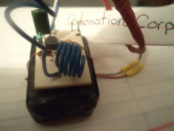 Y una antena de mas de 10cm de altura, puede ser del mismo alambre para puentes con el que se hizo la bobina.