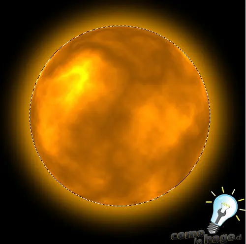 2.- Dentro de este documento creamos un círculo con la herramienta de selección elíptica. Para que el círculo quede simétrico lo dibujamos mientras presionamos la tecla Shift. Luego, pintamos este círculo de un color anaranjado.