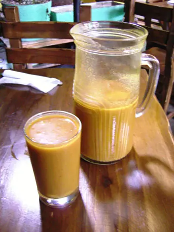 Poner jugo de naranja fresco a gusto, media banana, hielo y una pisca de jengibre rayado. Luego mezclar en una licuadora hasta tener una mezcla homogenea, una vez mezclado poner tequila a gusto.