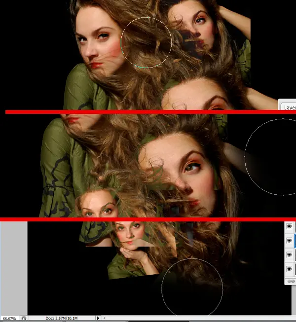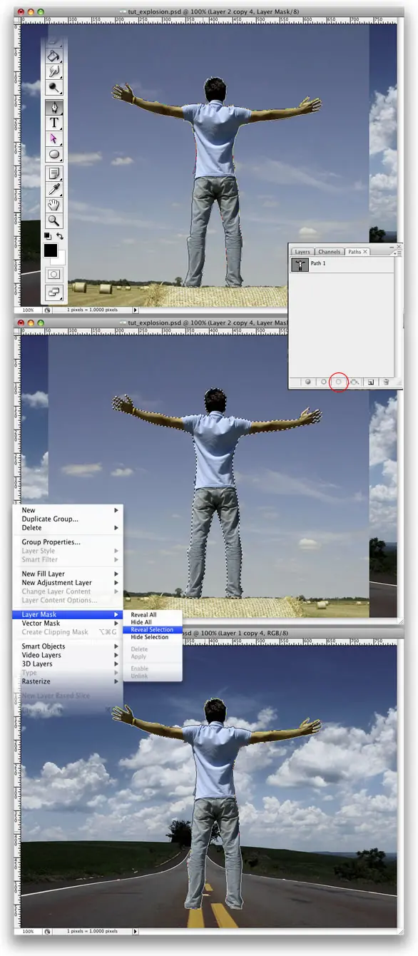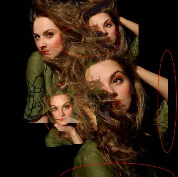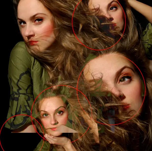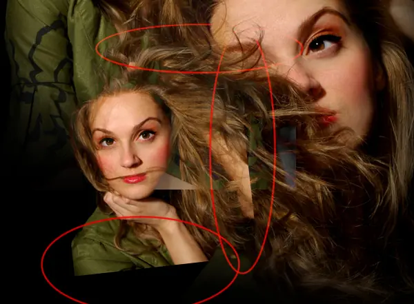 Paso 10Ahora repita este paso para el resto de las imágenes hasta que hayan sido mezclados así. En "Chica 1" crear una máscara, una vez más, y luego borrar las zonas indicadas.