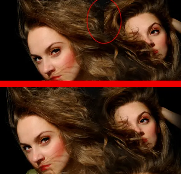 Paso 15Acabo de notar que "Chica 2 revisado" ahora tiene un borde afilado, ya que girar la foto, por lo que volver a su máscara y borrar esa parte por lo que es una mezcla homogénea.