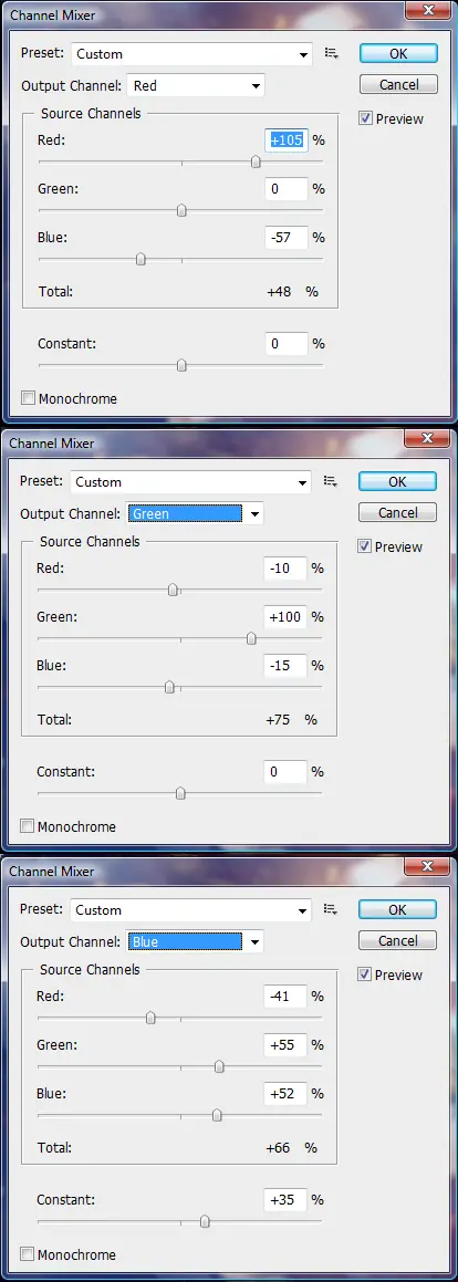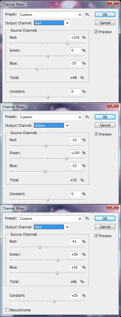 Paso 24Ahora, ir a Capa> Nueva capa de ajuste Mezclador de canales. Coinciden con la configuración de la mía, y luego una vez que haya terminado cambiar esta capa de ajuste para Aclarar el 51%.