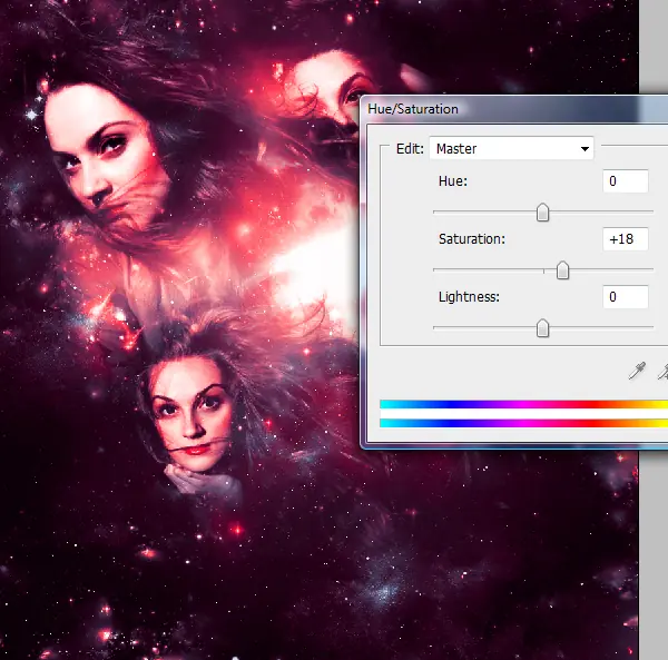 Paso 27Ahora Ir a Capa> Nueva capa de ajuste> Tono / Saturación y simplemente cambiar la saturación a 18.
