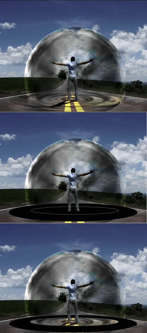 Paso 19Crea una selección elíptica como la siguiente imagen. Luego lo rellenamos de negro. Después de eso, crear otra selección elíptica, pero más pequeño. A continuación, elimine la parte de la capa. Con la herramienta Varita mágica (W), seleccionar la parte de la capa de negro.